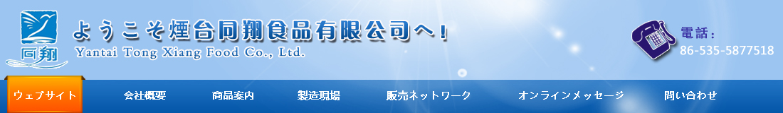 煙臺同翔食品有限公司はワールドワンダーランドと言われる蓬萊に位置しており、西側(cè)は國家1級開放港、北は206號國道、新築された潮水國際空港と近く接しており、立地的に恵まれていて、交通は非常に便利です。